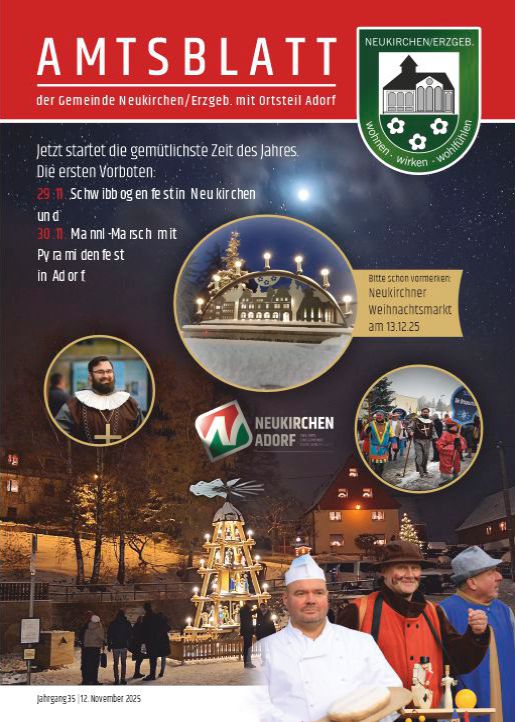 Hier können Sie sowohl die jeweils aktuellen Amtsblätter der Gemeinde Neukirchen herunterladen als auch Amtsblätter aus vergangenen Jahrgängen einsehen.